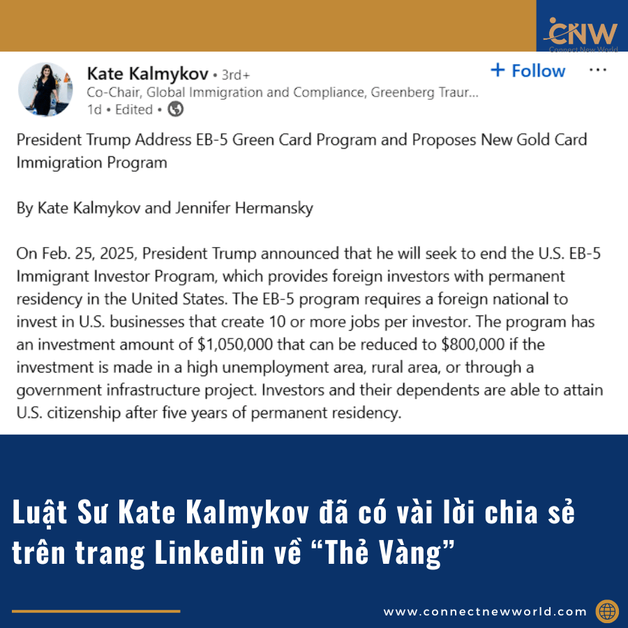 “Thẻ Vàng” Của Trump: Thách Thức Hay Cơ Hội Cho Nhà Đầu Tư EB-5 Việt Nam?